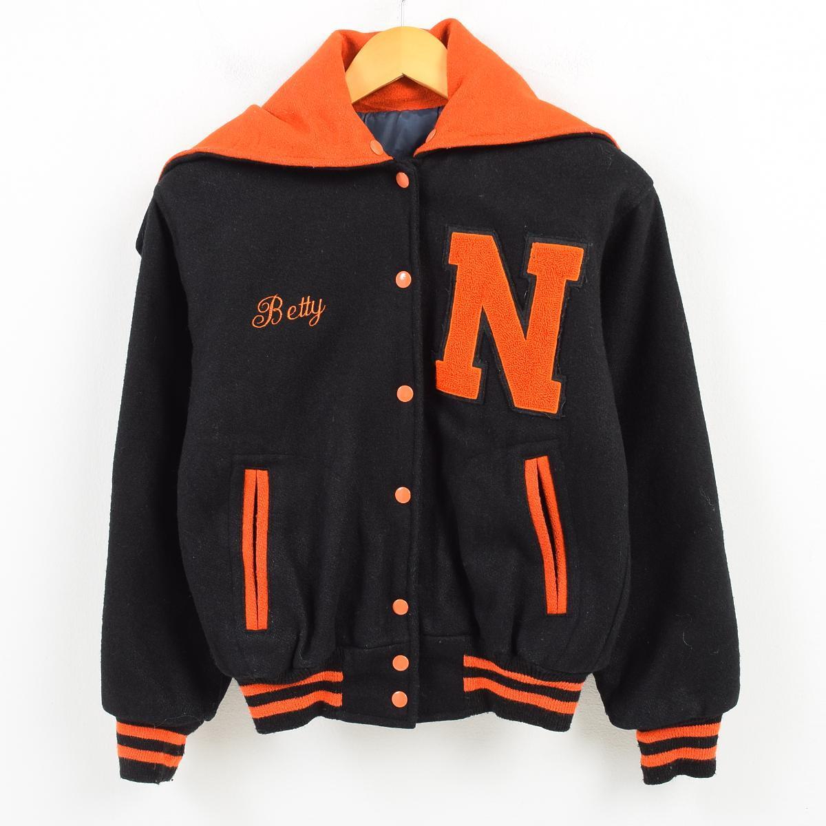 70〜80年代 FORDHAM ウイングフット フード付き ウールスタジャン アワードジャケット レディースM ヴィンテージ /waj7543 【中古】【古着屋JAM】 【171024】【PD1804-3】【SS1903】