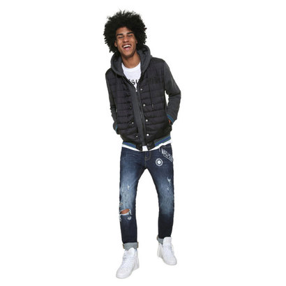 【アウトレット】デシグアル Desigual ナイロン中綿フード付きスタジャン (BLACK)