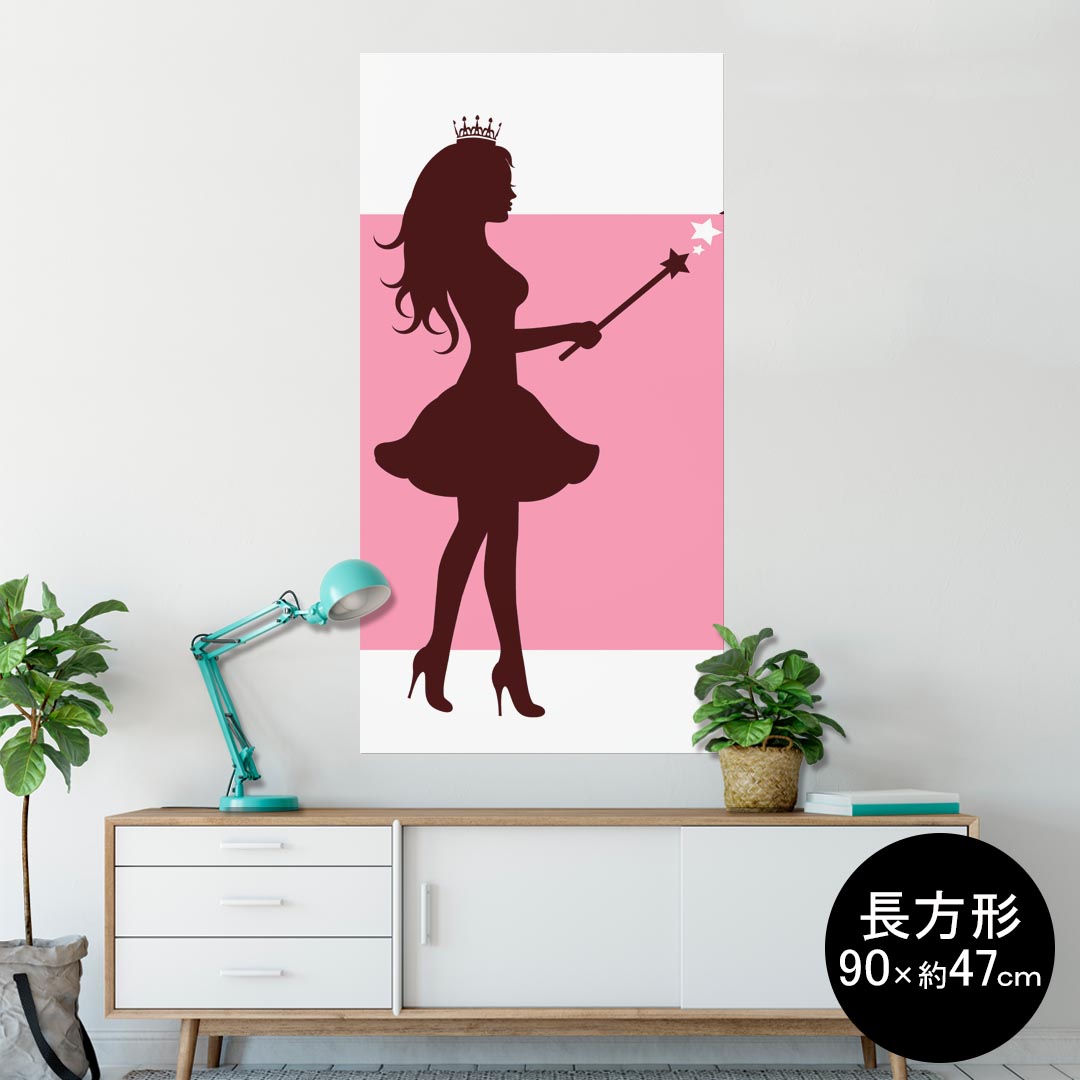 ポスター ウォールステッカー 長方形 シール式ステッカー 飾り 90×47cm Lsize 長方形 壁 インテリア おしゃれ 剥がせる wall sticker poster 011292 王冠 プリンセス ピンク